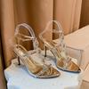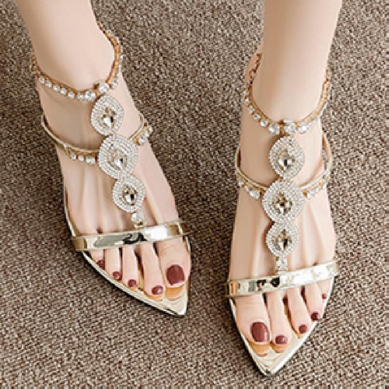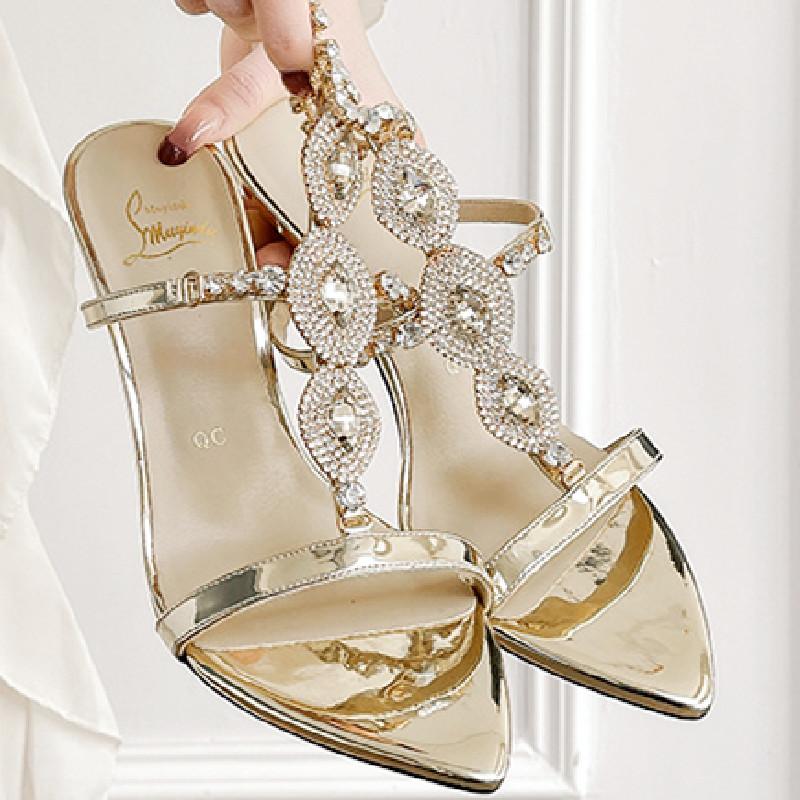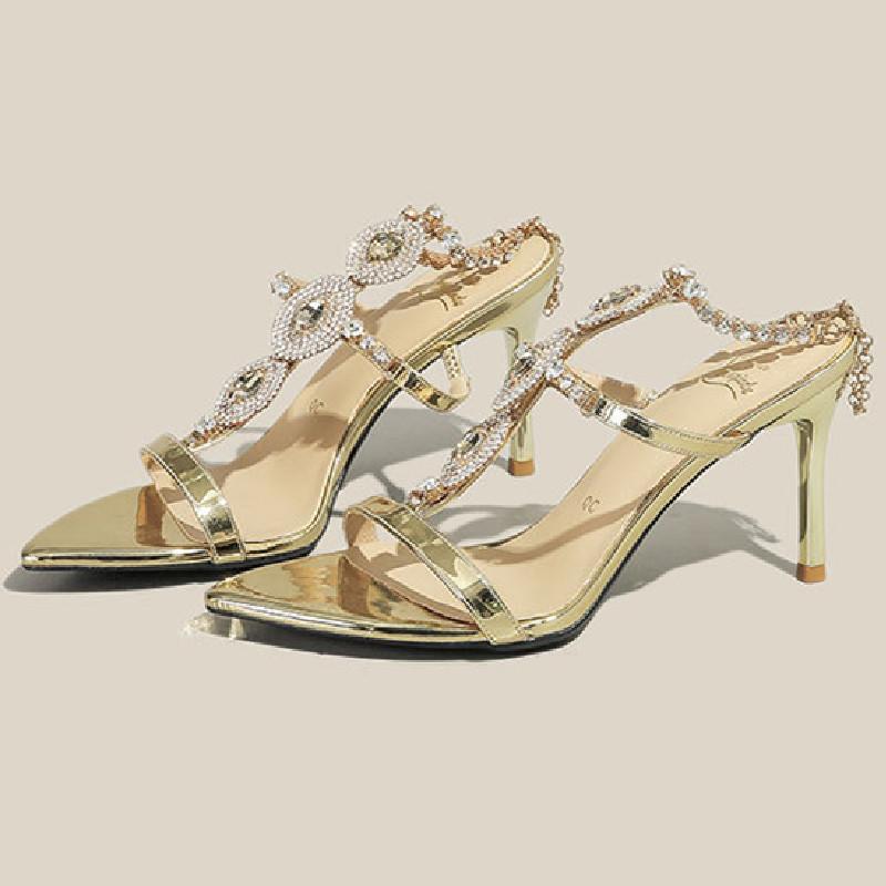 Fashion Luxury Rhinestone Women Sandals Fashion Pointed Toe Open Toe Chain Buckle Roman Shoes High Quality Elegant Thin Heel Dress Shoes