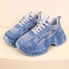 Мода Мода Стразы Массивные Кроссовки Женские Синий Деним Толстая Подошва Шнуровка Спортивная Обувь Женская Большой Размер Нескользящие Кроссовки на Платформе