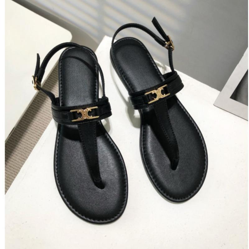 Модные женские роскошные сандалии с Т-образным ремешком 2025 лето новая дизайнерская марка ПУ кожа плоская обувь металлическая отделка шлепанцы Zapatos De Mujer — купить товар онлайн с бесплатной доставкой по всему миру!
