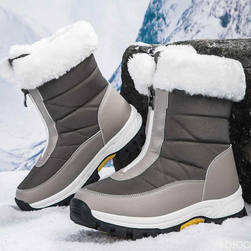 Модные уличные зимние ботинки для женщин, новый стиль, устойчивые к холоду, теплые ботинки, удобные, на передней молнии, износостойкая хлопковая обувь