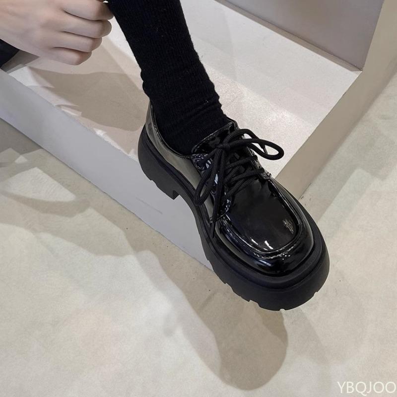 Модные женские балетки осень черные модные удобные кожаные туфли на шнуровке для улицы повседневные универсальные женские туфли