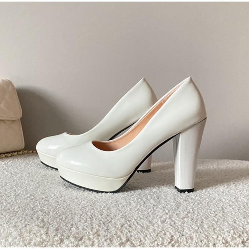 Мода Новые Туфли на Высоком Каблуке Женские Белые Свадебные Туфли Толстый Высокий Каблук Мода Вечеринка Лодочки Обувь Черный Красный Большой Размер 34-42