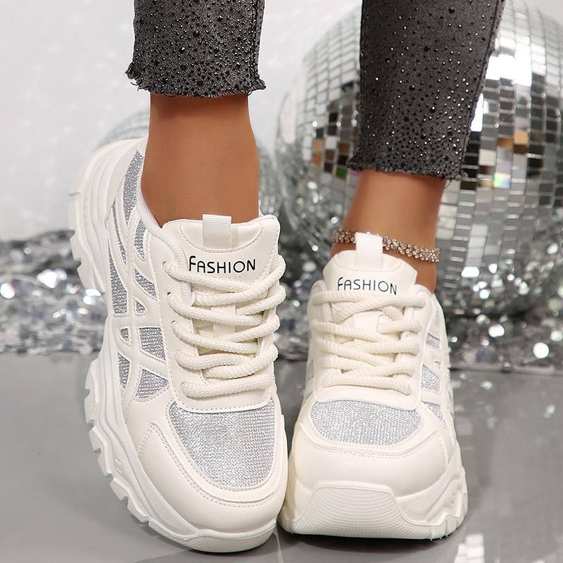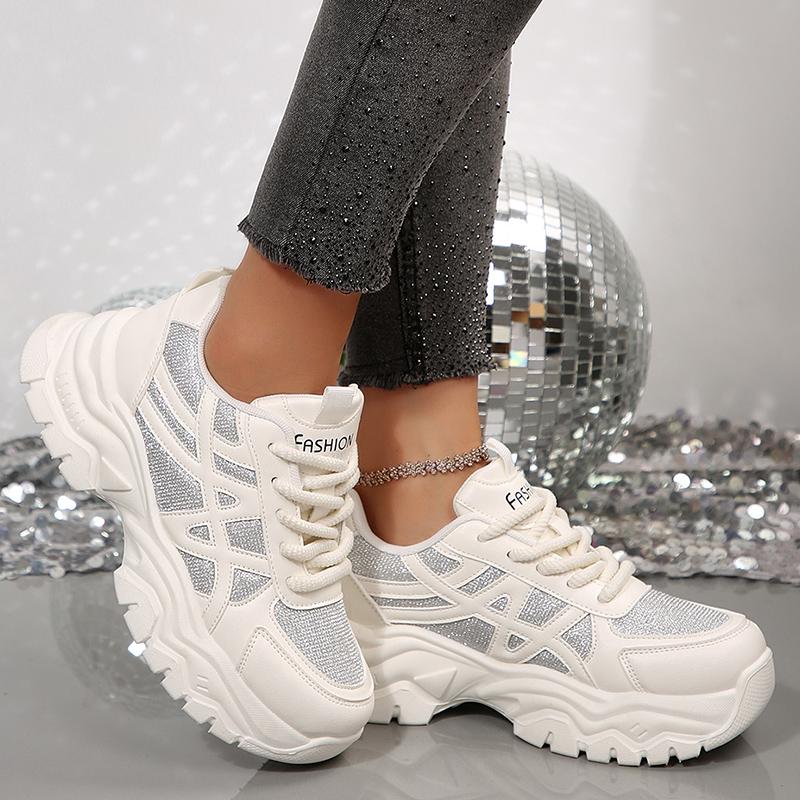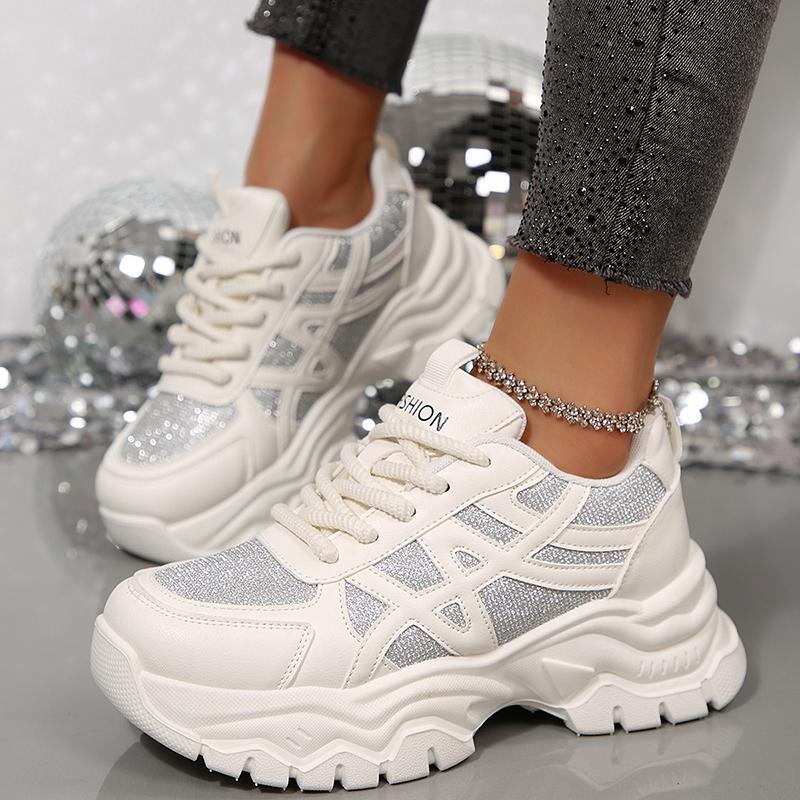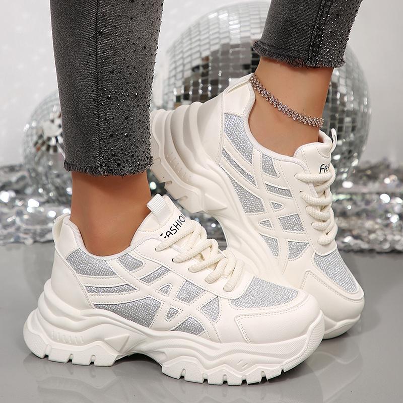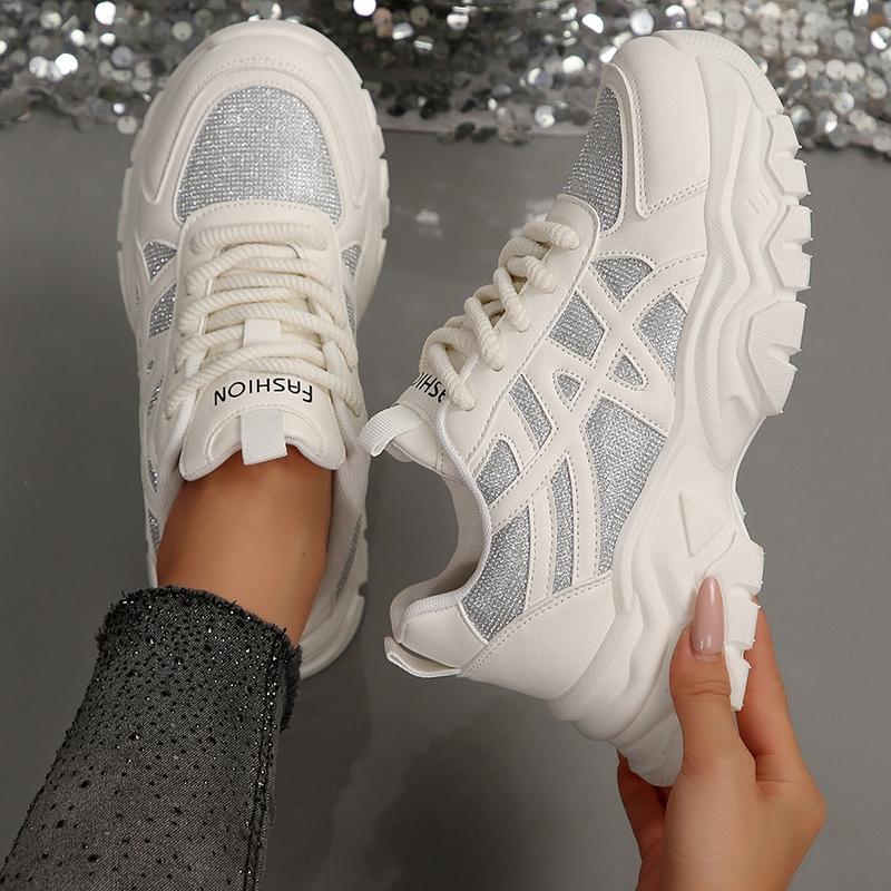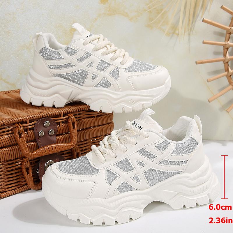 Мода Мода Кристальные Массивные Кроссовки Женские Толстая Подошва Нескользящая Вулканизированная Обувь Женская Большого Размера 43 Дышащая Платформа Спортивная Обувь