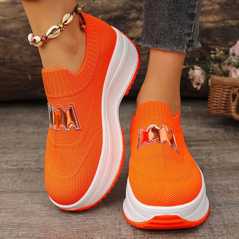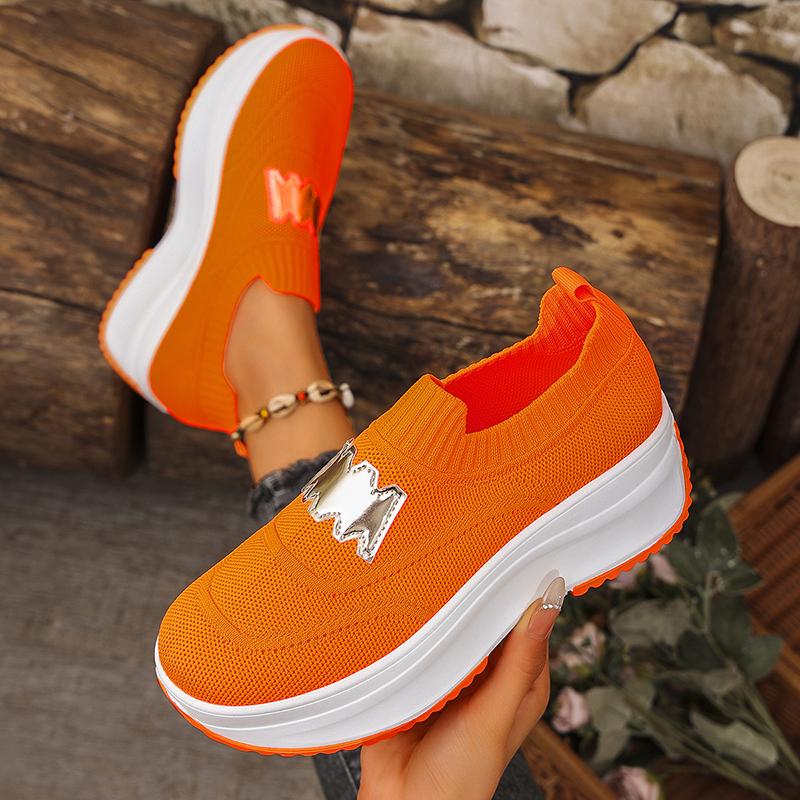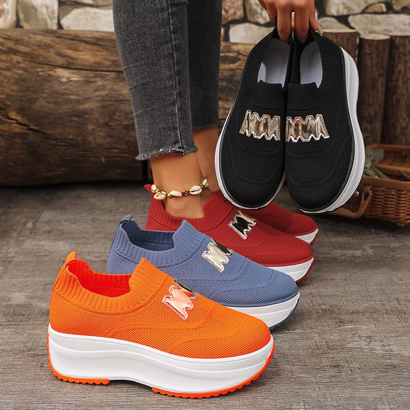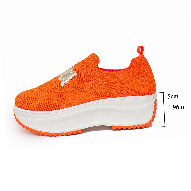 Модные дышащие вязаные кроссовки на платформе для женщин, модные криперы с буквенным декором, женская обувь на толстой подошве, слипоны для ходьбы, размеры 36-43