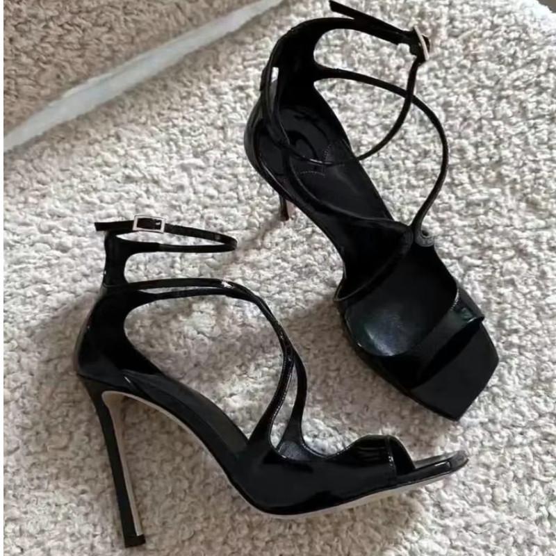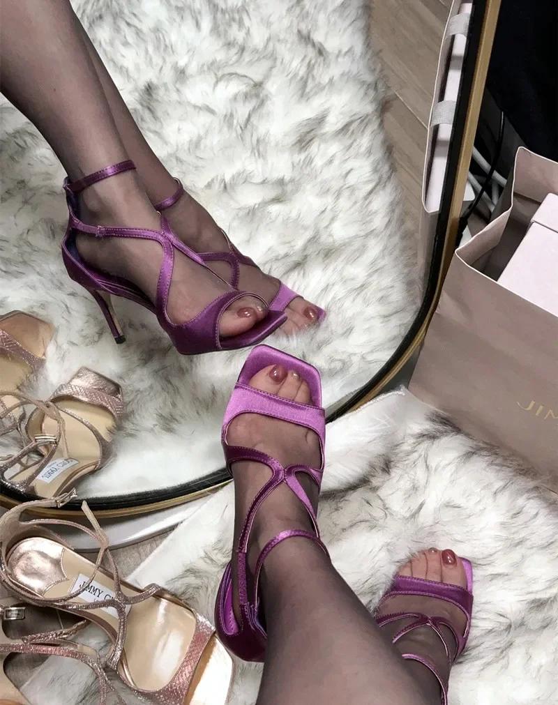 Fashion Luxury Satin Designer Women Pumps Sexy Cross Strap Square Toe Heeled Sandals Elegant Purple Thin High Heels Party Dress Shoes