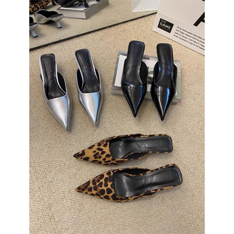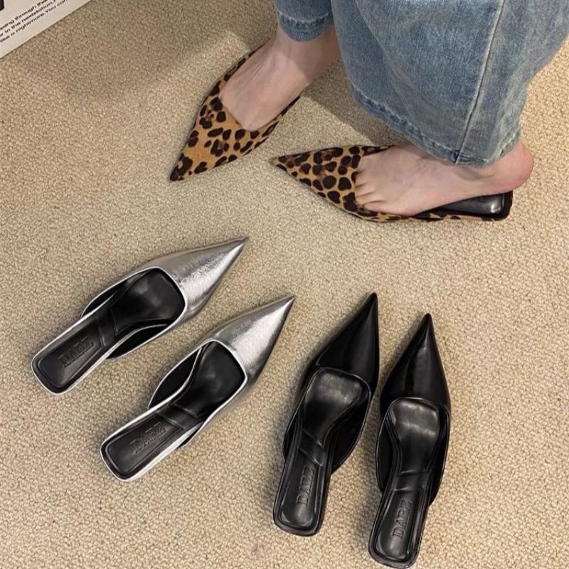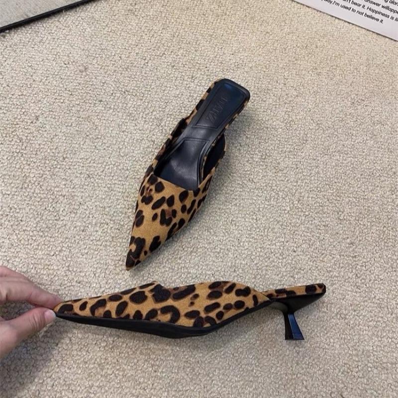 Модные роскошные сандалии женские тапочки с острым носком с леопардовым дизайном сандалии из ПУ мелкие слипоны на тонком низком каблуке повседневные мюли лоферы для улицы