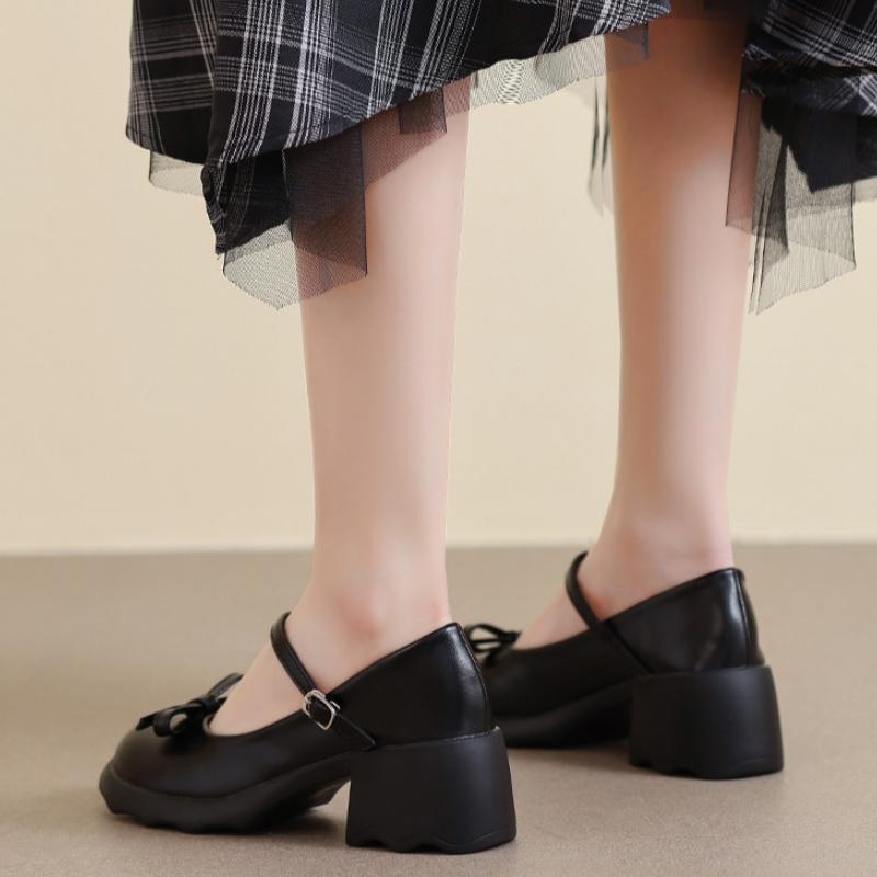 Мода 2025 Новый Стиль Женские Туфли Мэри Джейн Модные Элегантные Массивные Туфли на Платформе и Высоком Каблуке Женская Обувь Бант Пряжка на Щиколотке Вечерние Туфли