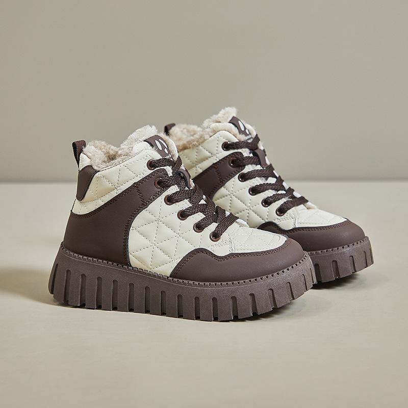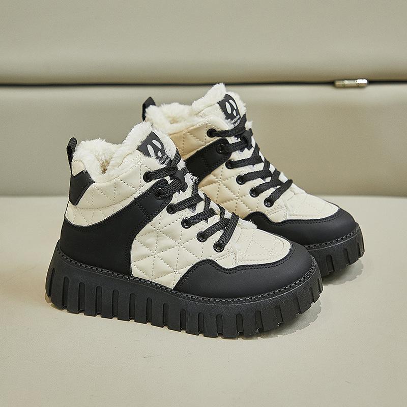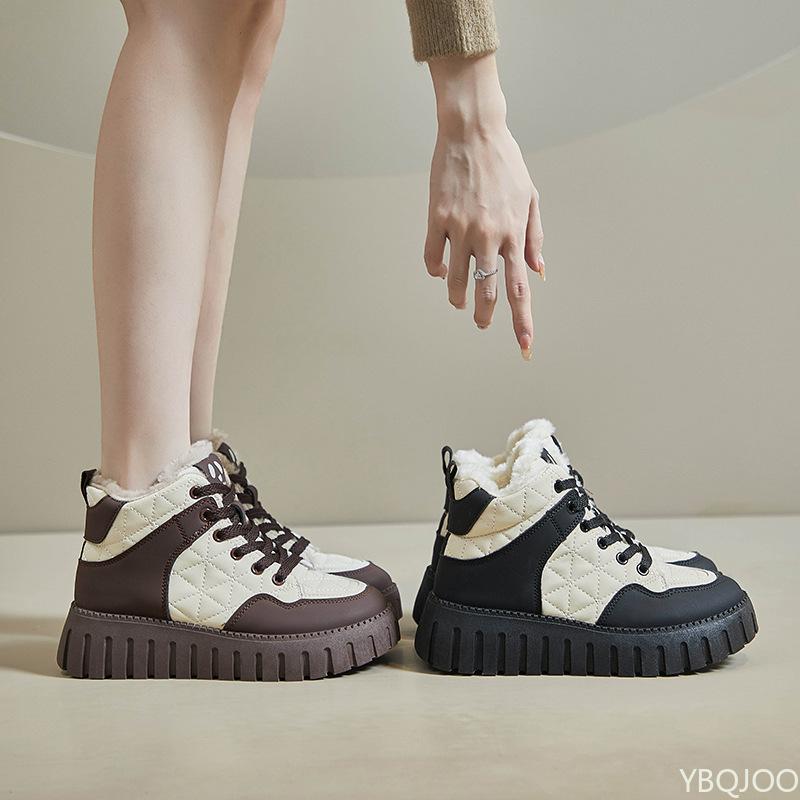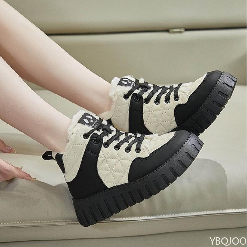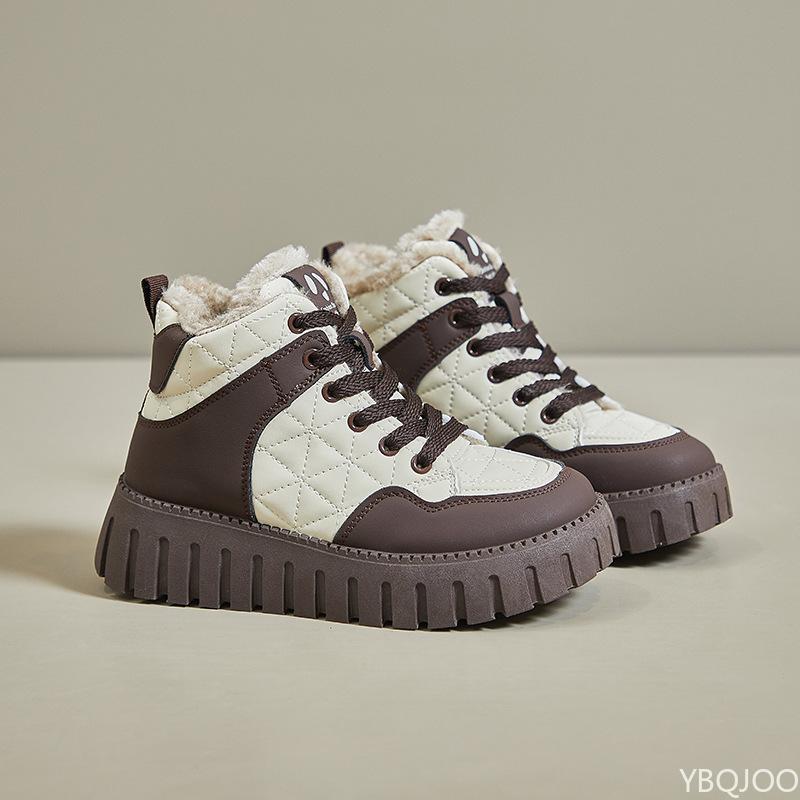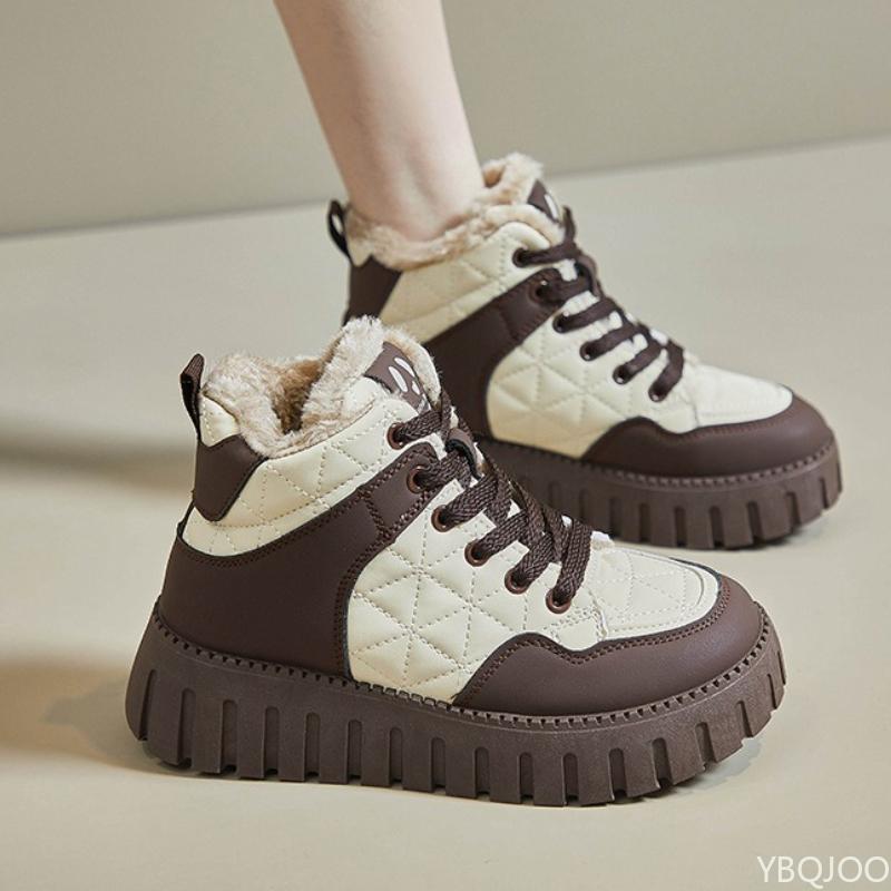 Модная женская хлопковая обувь плюшевые зимние ботинки на толстой подошве удобные противоскользящие теплые ботильоны на шнуровке на платформе увеличивающие рост