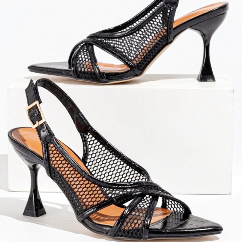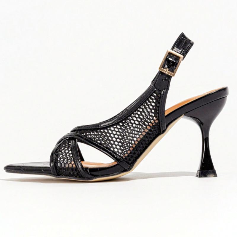 Fashion Mesh Pointed Toe Thin High Heel Women Sandals Fashion Patent Leather buckle strap Large Size Women Shoes Sexy Banquet Party Shoe