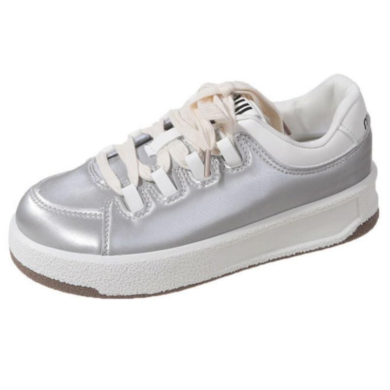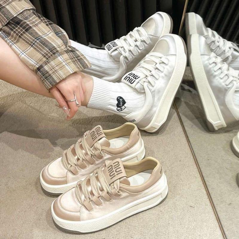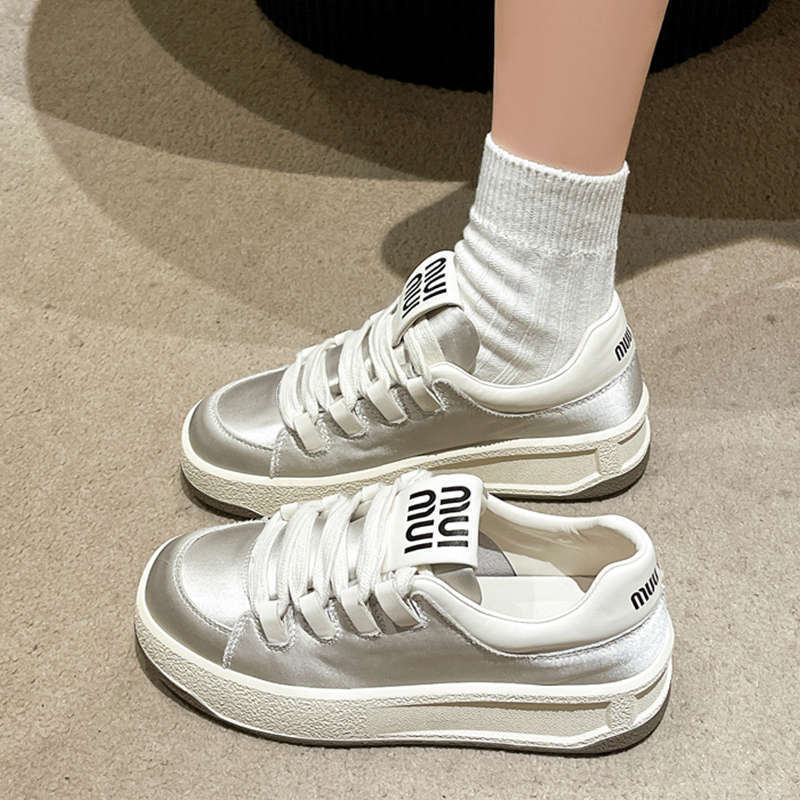 Fashion Spring Fashion Breathable Satin Casual Pink Sneakers 2025 New Style Women's Vulcanized Round Toe Thick Sole Lace Up Flat Shoes