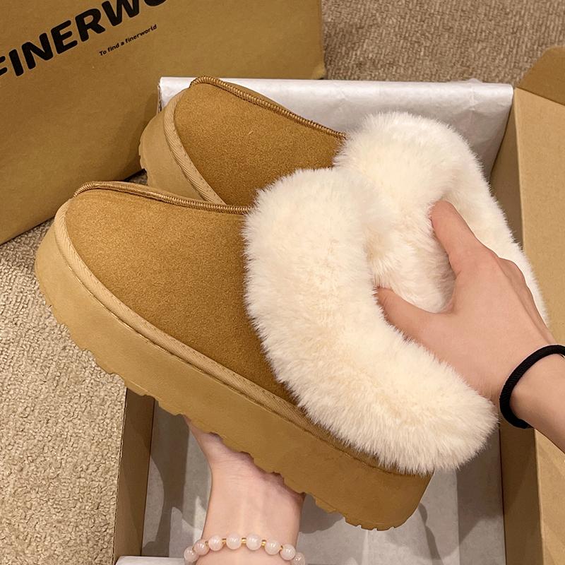 Fashion Winter Plush Warm Snow Boots for Women Fashion Faux Rabbit Fur Platform Slippers Woman Thick Sole Non Slip Fluffy House Slippers — купить товар онлайн с бесплатной доставкой по всему миру!