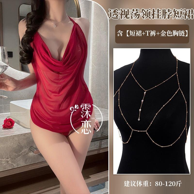 Сексуальное нижнее белье чистое желание воротник-стойка висячий шейный ремешок карман на животе пижамный комплект сексуальная перспектива забавная одежда бесплатно