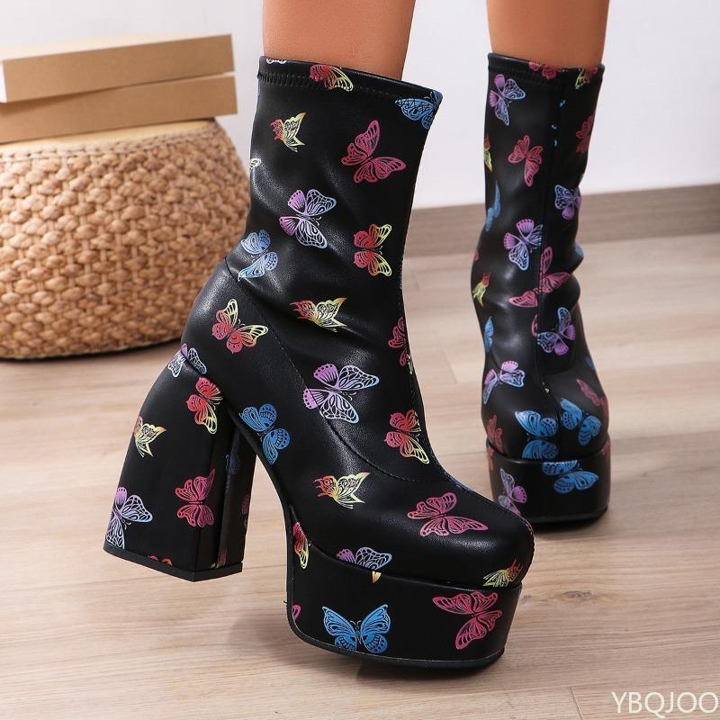 Модные женские осенне-зимние новые короткие ботинки большого размера с квадратным носком, водонепроницаемой платформой и высоким каблуком, модные женские ботинки на толстой подошве