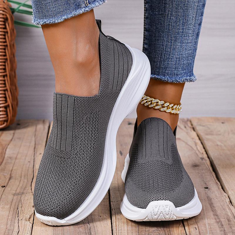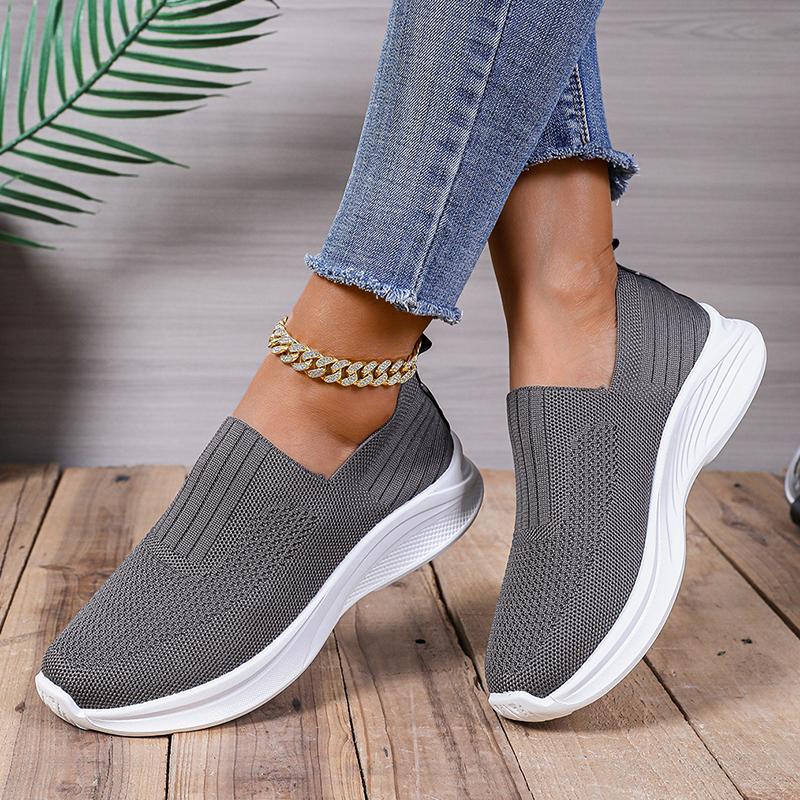 Модная повседневная спортивная обувь слипоны для женщин, дышащие кроссовки из вязаного материала с мягкой подошвой, женская легкая удобная обувь для ходьбы больших размеров