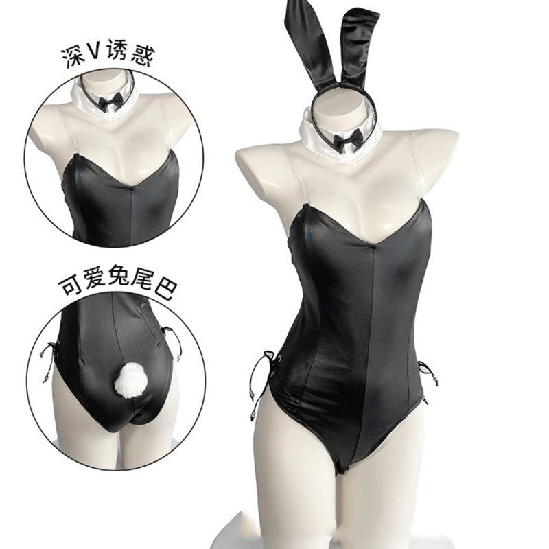 Sexy lingerie rabbit uniform seduction patent leather one-piece open crotch double-layer sexy bunny nightclub performance suit