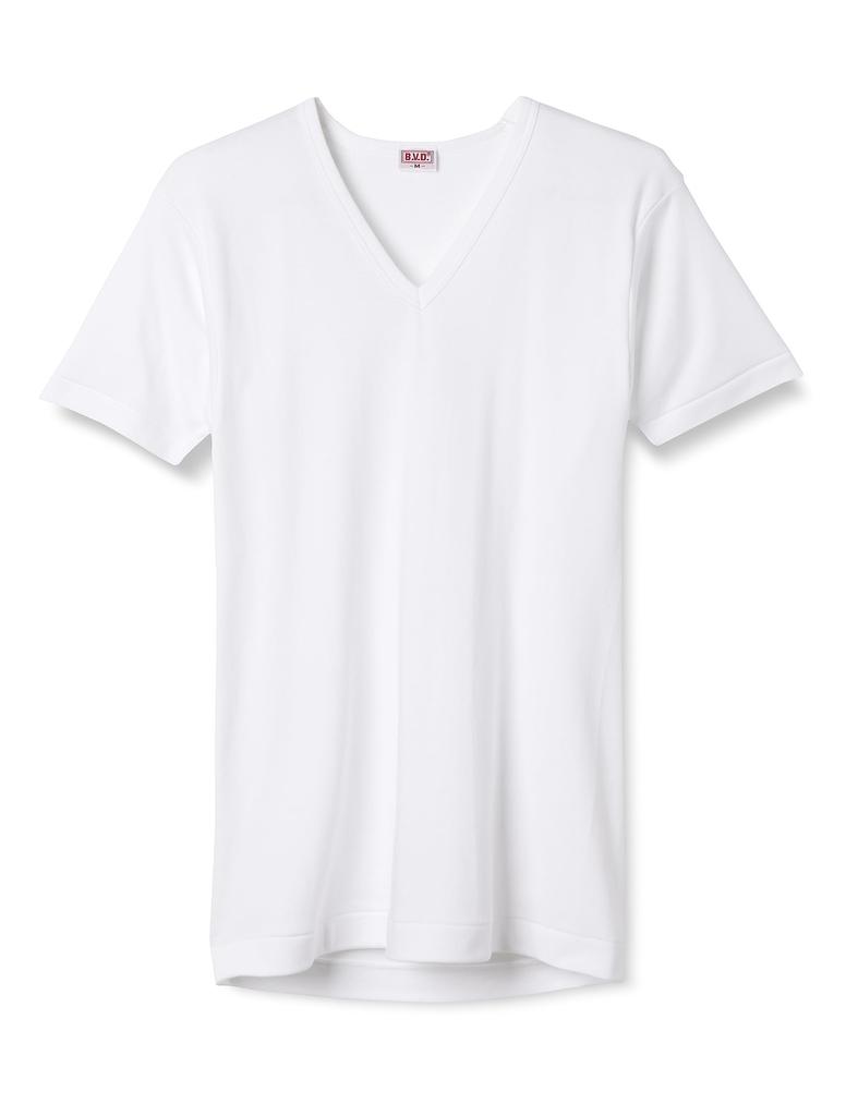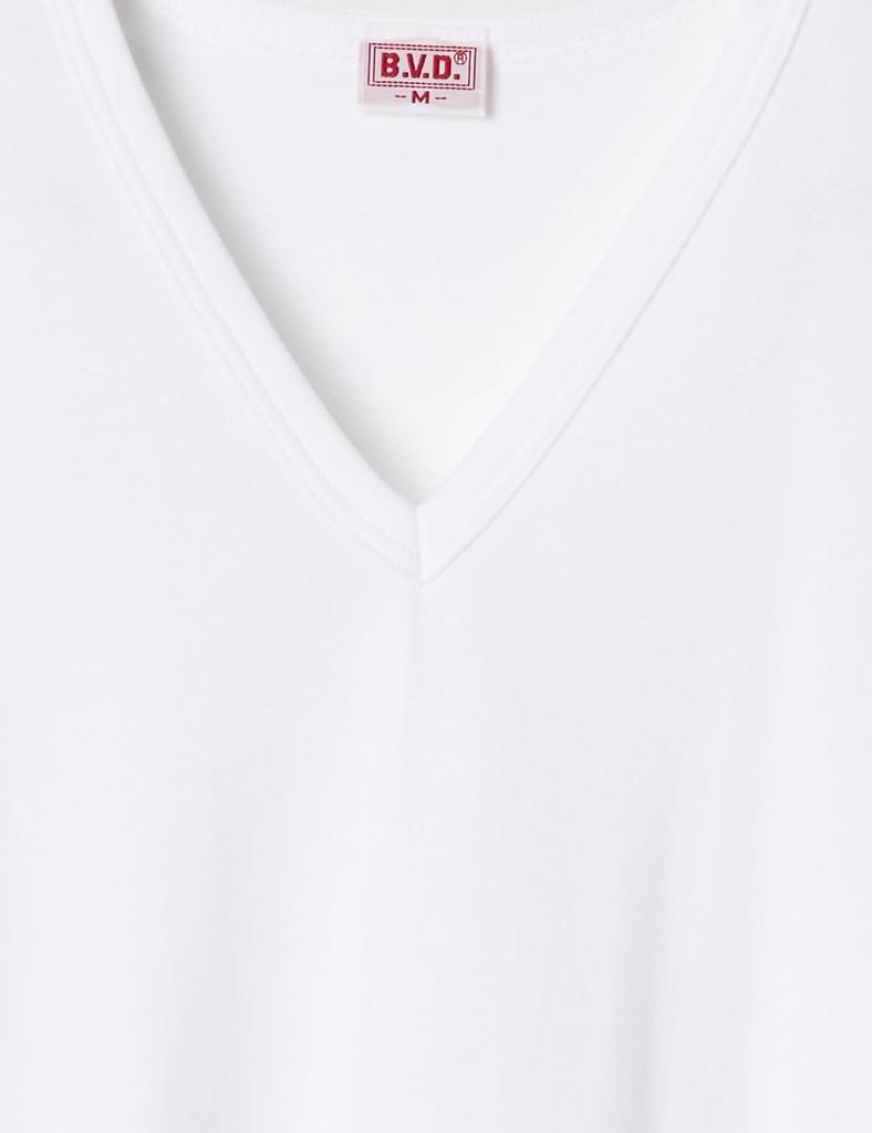 BVD Мужская футболка с коротким рукавом, теплая, плотная, гладкая, размер M, с V-образным вырезом, нижнее белье, 100% хлопок, ткань, белая,