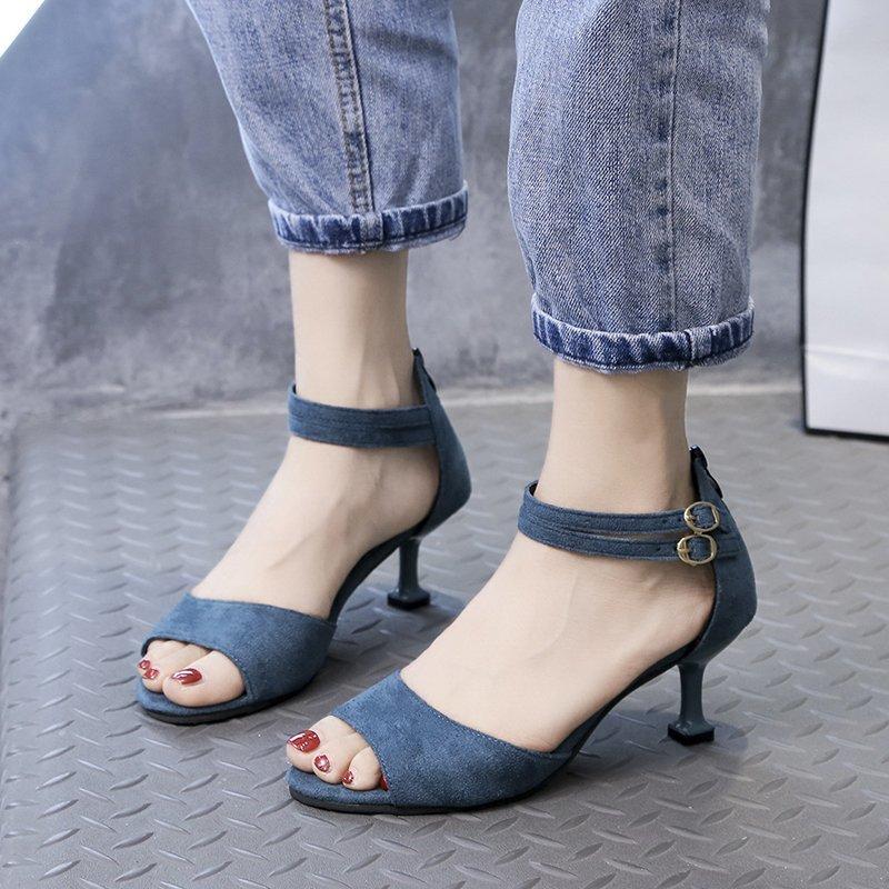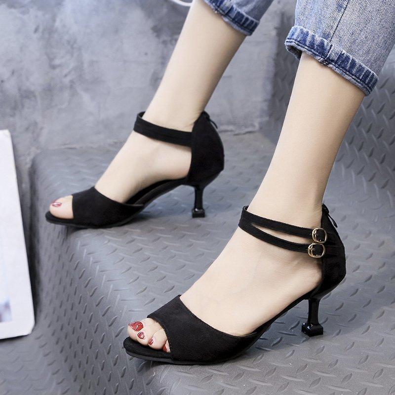 Мода 2025 Босоножки Женская обувь Летние Женские Каблуки Пряжка Костюм Женский Бежевый На Все Случаи Жизни Новые Девушки Черный Стилет Бархат Мода Весна