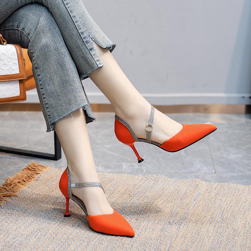 Fashion Mix Color Ankle Strap High Heels Shoes Women Pu Leather Thin Heeled Pumps Woman 2025 New Shining Patchwork Party Shoes — купить товар онлайн с бесплатной доставкой по всему миру!