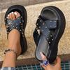 Модные туфли на массивной платформе с заклепками в панк-стиле, женские летние 2025, черные из искусственной кожи, сандалии на танкетке, женские нескользящие на толстой подошве, Sandalias Mujer