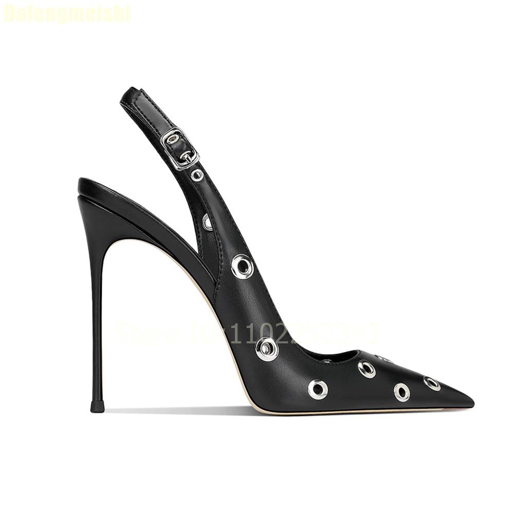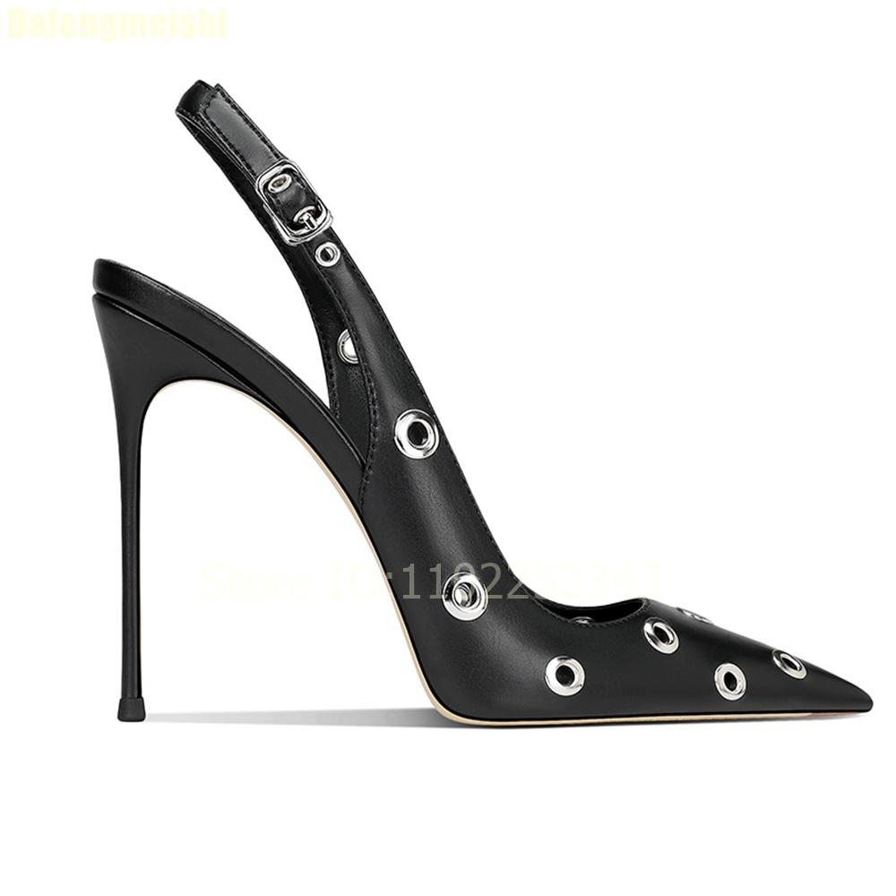Модные металлические сандалии с пряжкой из черной кожи с вырезами, весна 2025, новый стиль, женские туфли на шпильке, летние модные сандалии с неглубоким острым носком