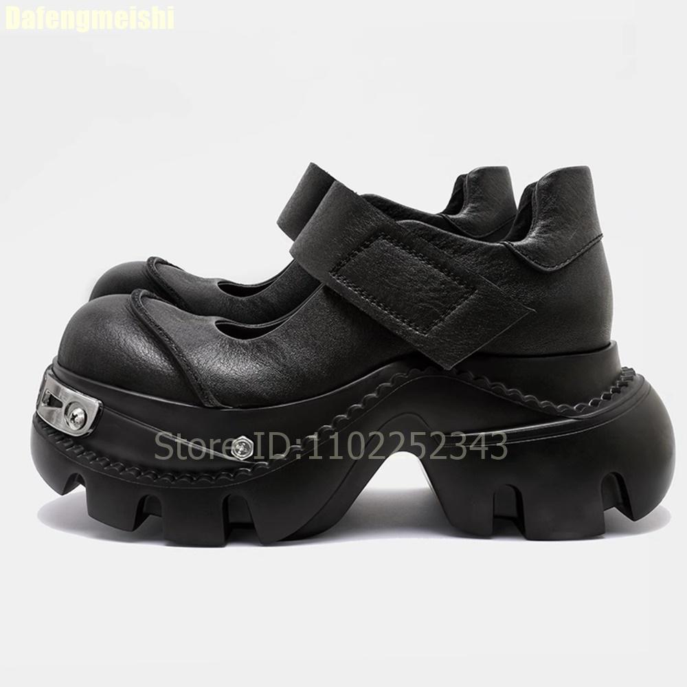 Мода 2025 Новые туфли Мэри Джейн на толстой подошве Женские Панк-стиль Летние С мелким круглым носком Черные кожаные туфли Туфли на платформе