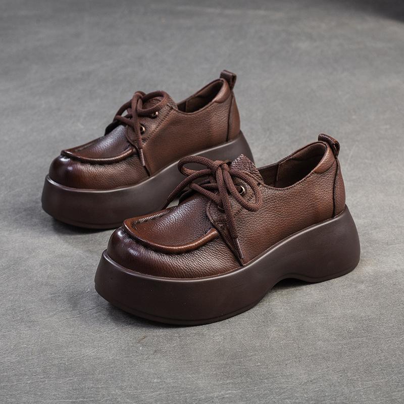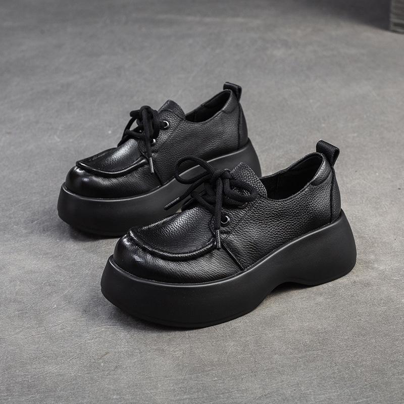 Мода GKTINOO 2024 Осень Новые Натуральная Кожа Однотонные Повседневные Туфли на Толстой Подошве Шнуровка Универсальные Женские Туфли на Плоской Платформе