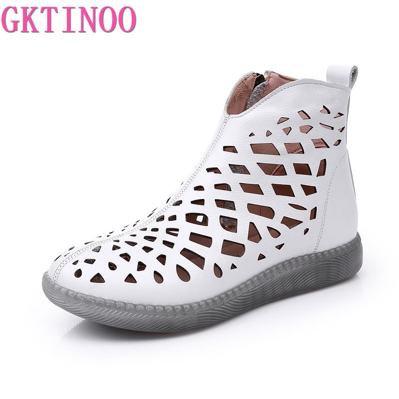 Модные летние женские ботинки GKTINOO Мода 2025 Новые женские сандалии из натуральной кожи Ажурный дизайн Нескользящий круглый носок Женская обувь — купить товар онлайн с бесплатной доставкой по всему миру!