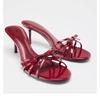 Модные новые женские босоножки на высоком каблуке винного цвета с квадратным носком и декором в виде бабочки, летние уличные шлепанцы, женская обувь на тонком каблуке для вечеринок и свадеб