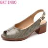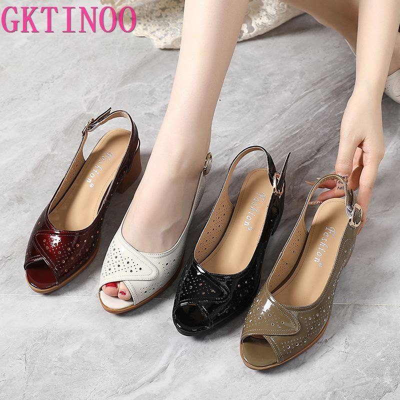 Модная летняя обувь GKTINOO 2025 для женщин, босоножки на высоком каблуке из мягкой лакированной коровьей кожи с открытым носком, повседневные полые сандалии, большие размеры 34-43