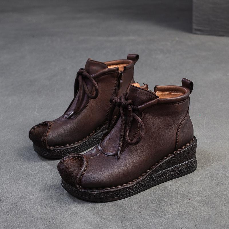 Модная GKTINOO 2025 Осень Зима Новинка Ретро Ручная работа Ботильоны из Натуральной Кожи Круглый Носок Женские Туфли на Танкетке