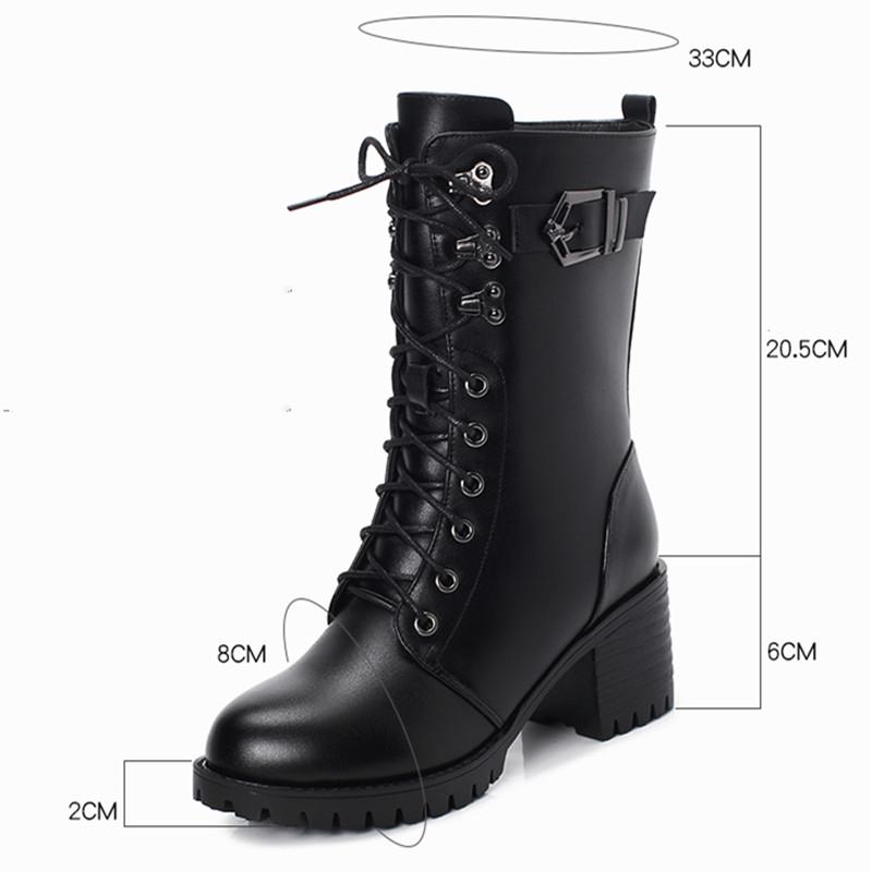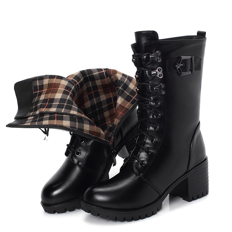 Fashion GKTINOO Boots Women Genuine Leather High-heeled Large Size Motorcycle Boots Women New Wool Warm Winter Boots for Women