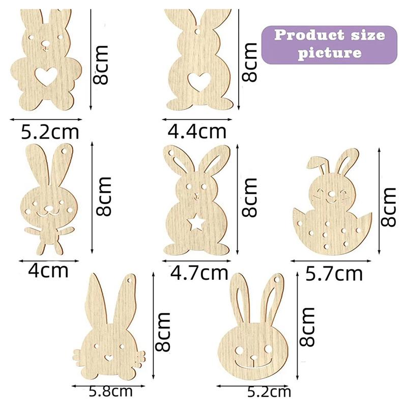 AD23-70PCS Unfinished Blank Wood Cutout Wooden Easter Bunny Shaped Wooden Easter DIY Wooden Craft For Easter Spring Durab