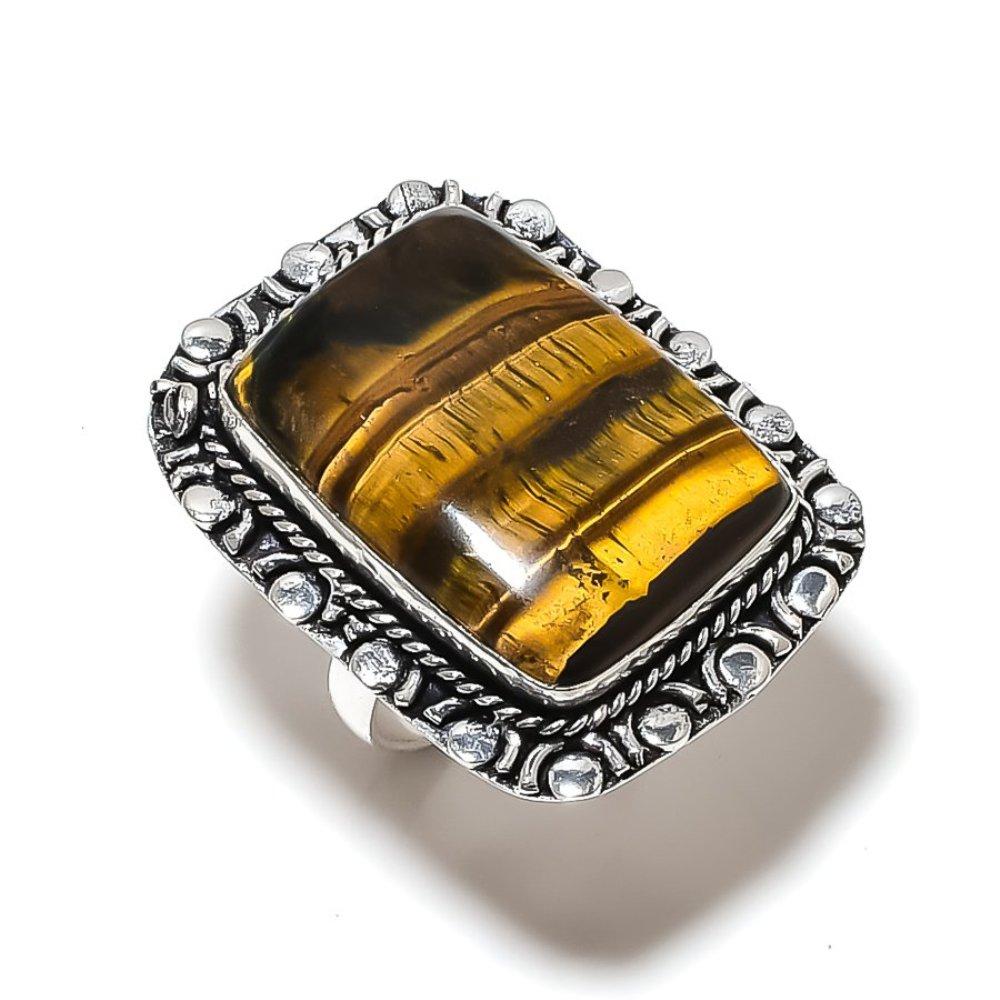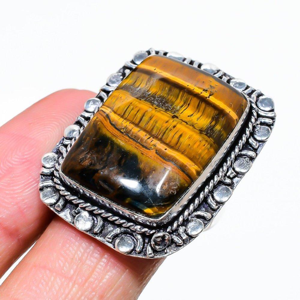 Камень Тигровый глаз Серебро 925 пробы Подарок Ювелирное украшение Кольцо Размер 8