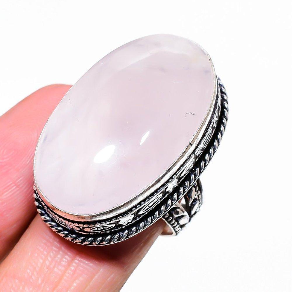 Драгоценный камень Розовый кварц 925 стерлинговое серебро Подарочное ювелирное изделие Кольцо Размер 10