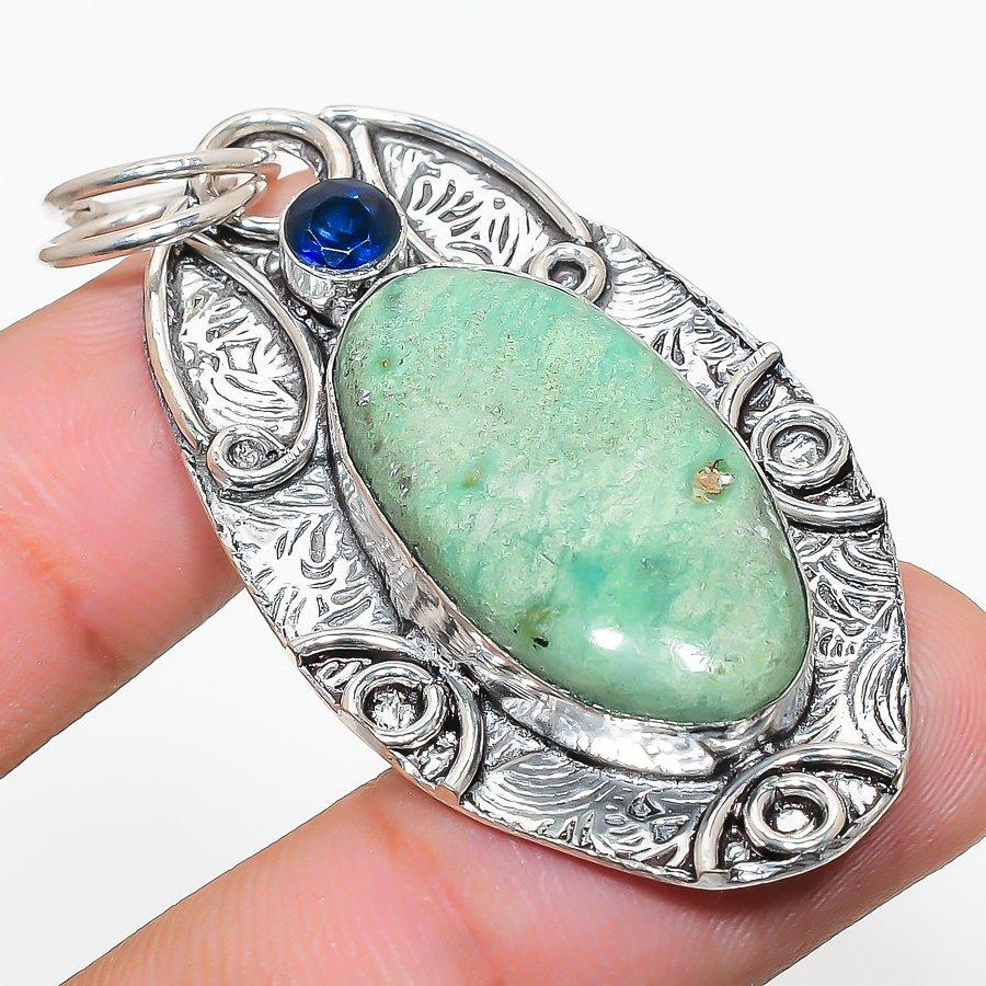 Хризопраз, Голубой Топаз Драгоценный камень 925 Стерлинговое серебро Ювелирная подвеска 2,17"