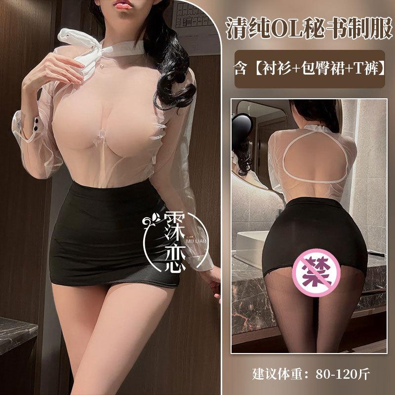 Сексуальное нижнее белье, сексуальный черно-белый перспективный костюм секретаря, соблазнение, чистое желание, юбка на бедрах, профессиональный костюм для настроения с открытой спиной
