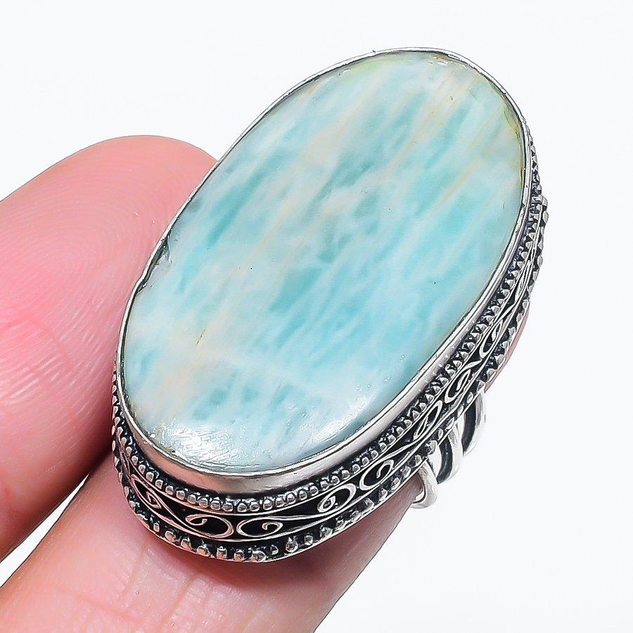 Кольцо из серебра 925 пробы с драгоценным камнем амазонит, размер 7