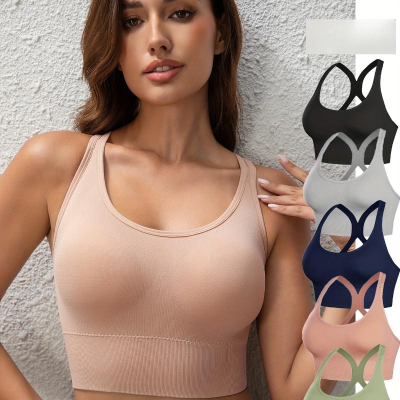 Женский беспроводной спортивный бюстгальтер с высокой поддержкой - Удобный, дышащий, противоударный со съемными вкладышами и дизайном спинки крест-накрест