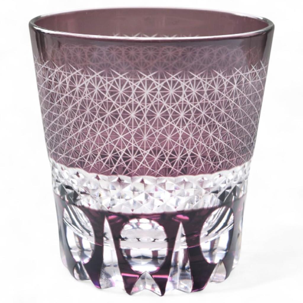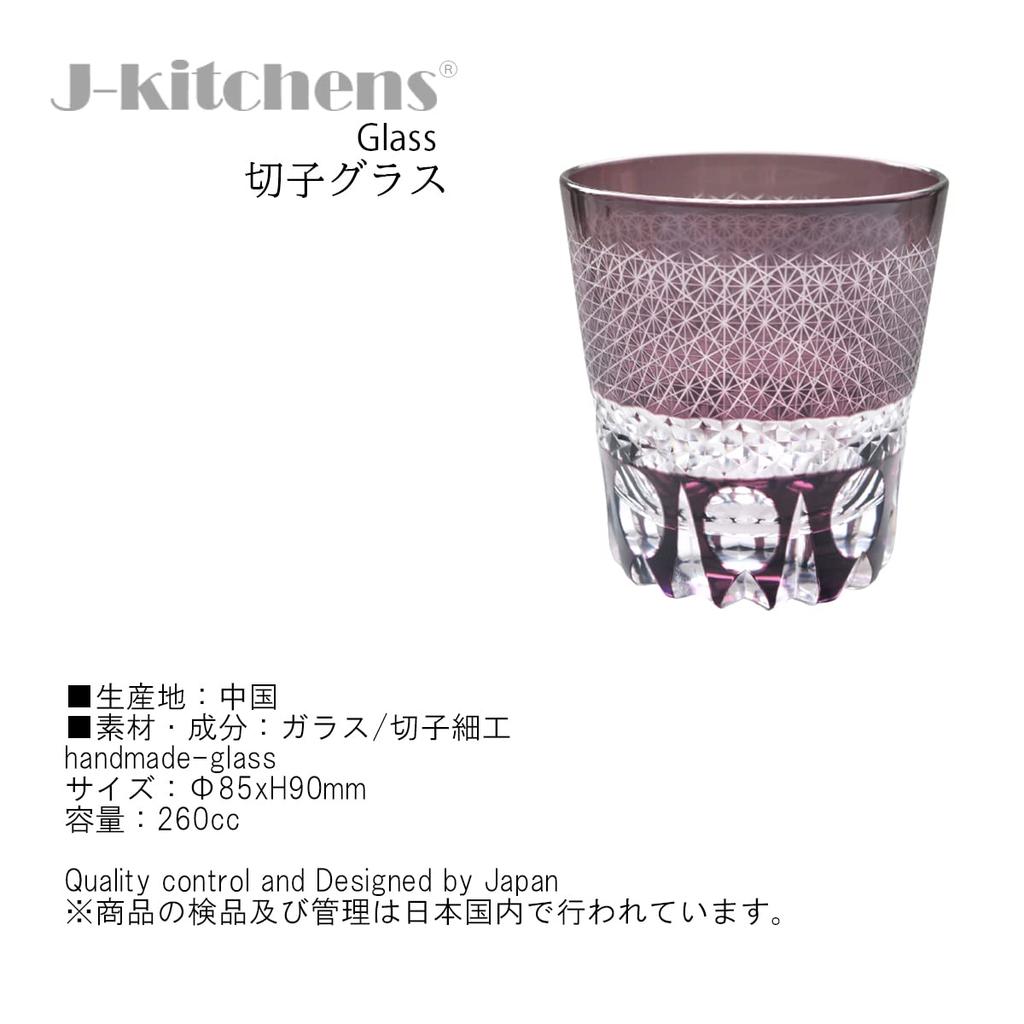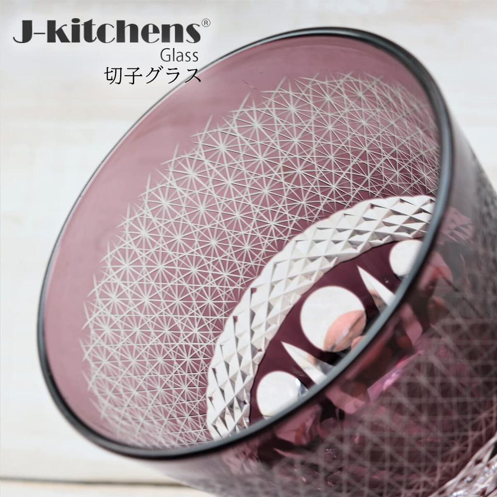 Mizukage Kiriko Glass Current Model J-kitchens Cup, 85xH90mm, 260cc, Sashiko, Purple, Bisho,