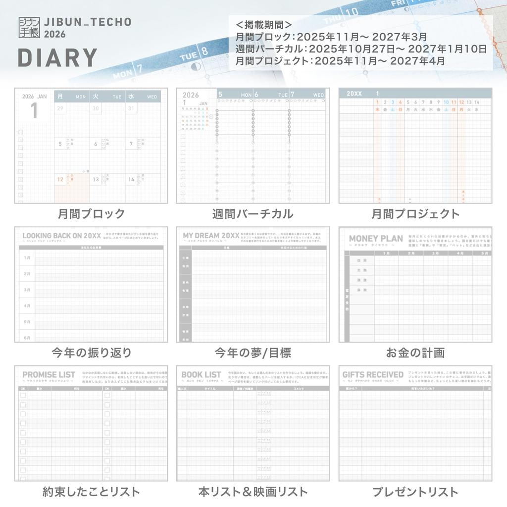 KOKUYO Ежедневник Jibun Techo mini 2026 B6 Начинается в ноябре 2025 года Заполняемый, Месячный/Недельный, Тонкий, Ni-JRM-26,