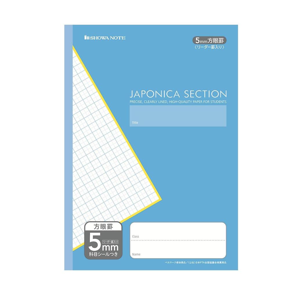 Тетрадь Showa Notebook Japonica Section Study Тетрадь А4 в клетку 5 мм, Предметы, (с +Лидер), Размер, 5 штук, Синий, 050050015