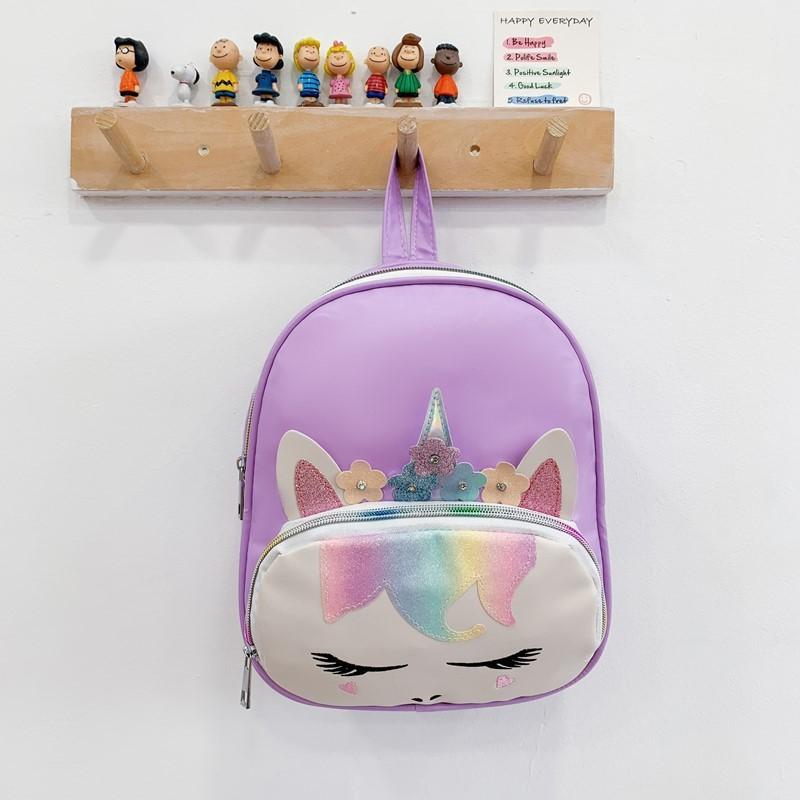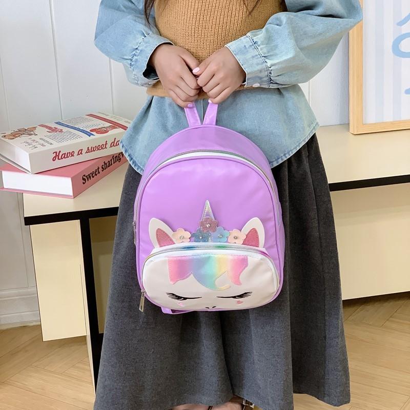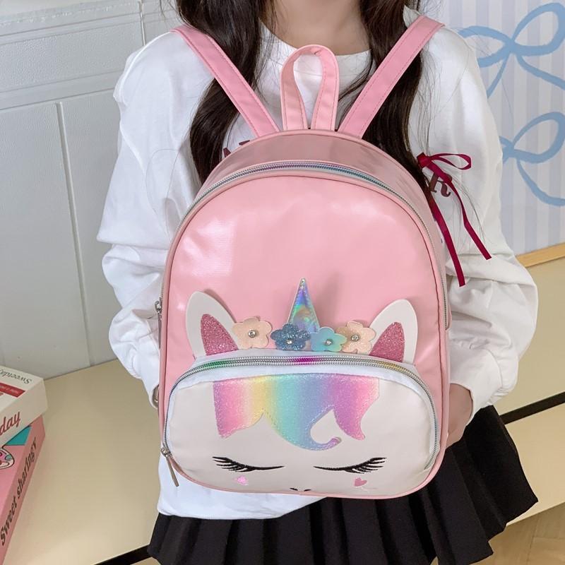 Fashion Unicorn Print Sequins Cartoon Kids School Backpack With Curved Straps