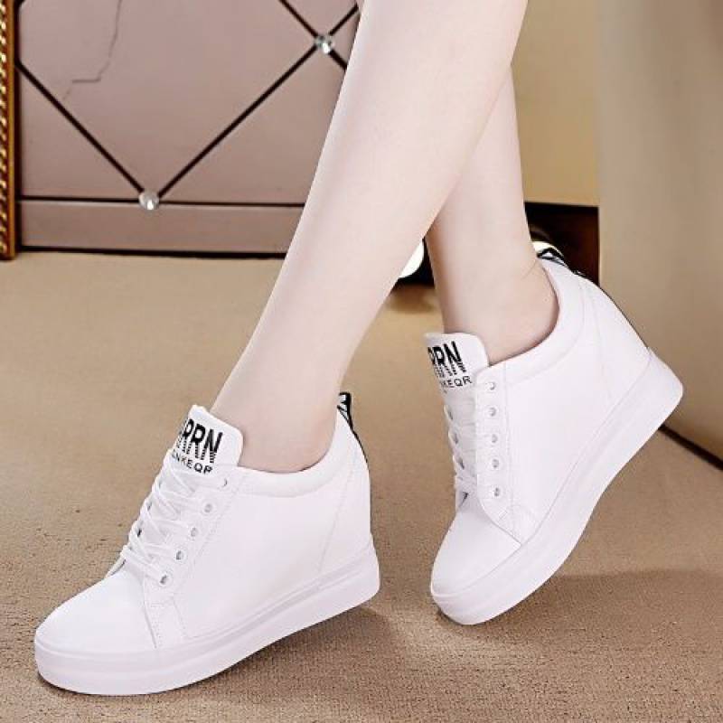 Модная женская обувь со скрытой платформой, новая белая вулканизированная обувь, платформа, скрытый танкетный каблук, повседневные кроссовки