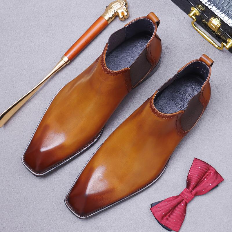 Модные Элегантные Мужские Деловые Формальные Ботинки Челси С Эластичными Вставками Из Натуральной Кожи Мужские Трендовые Короткие Ботинки Повседневные Британские Ботинки Слипоны