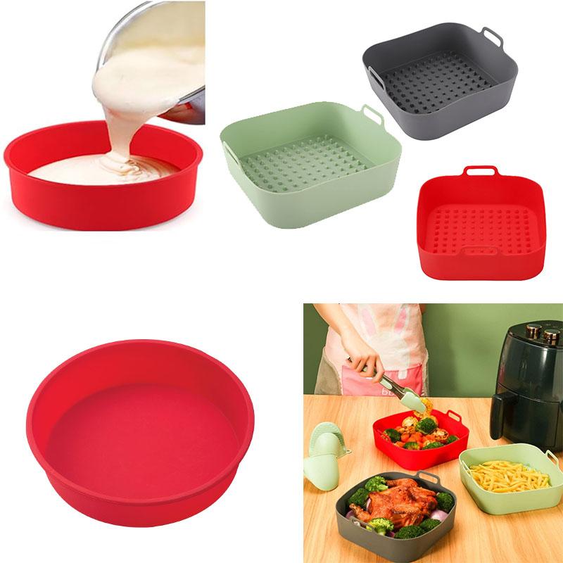 Silicone Air Fryer Basket Liners Non-Stick Baking Tray Heat-Resistant Round and Square Cooking Mats Oven Steamer Accessories