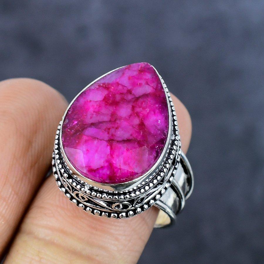 Рубин(Смоделированный) Кольцо из серебра 925 пробы с драгоценными камнями, размер 9