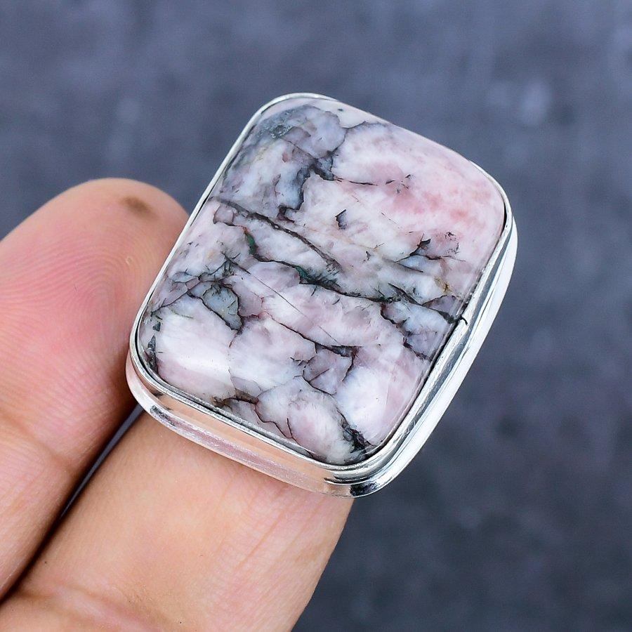 Родонит Драгоценный камень Серебро 925 пробы Ювелирное изделие Кольцо Размер 9