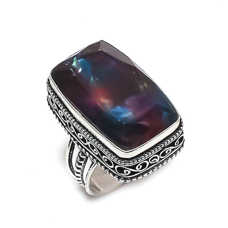 Кольцо из серебра 925 пробы с драгоценным камнем аммолит, размер 8