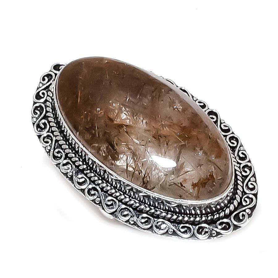 Золотистый рутил драгоценный камень 925 стерлинговое серебро ювелирное кольцо размер 10