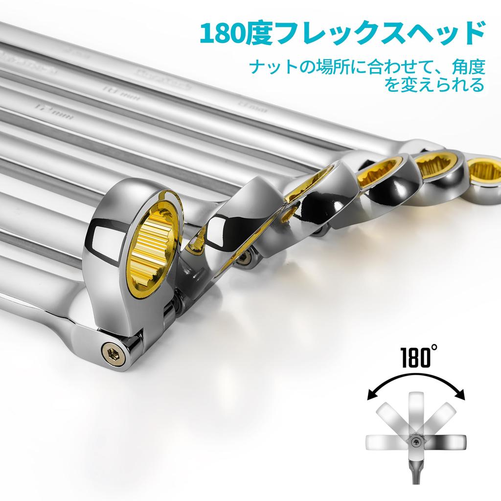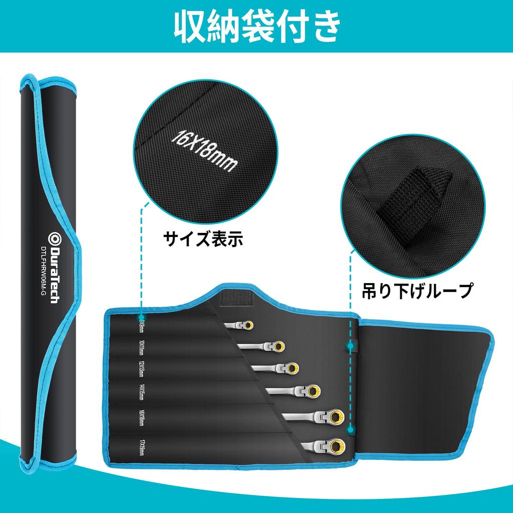 DURATECH Гаечный ключ Гибкий Трещоточный Длинный Подходит для Сорванных Болтов и 72 Хода Зеркальный Набор из 6 Открытых Накидных Набор, Гаечный ключ, Тип, Гайки, 8-19 мм, Зубцы,
